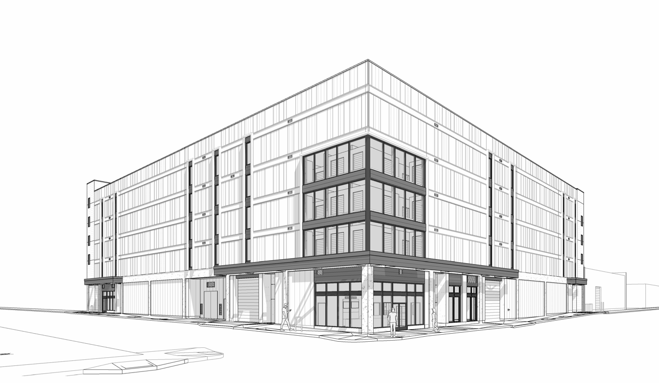The scope of work for the approximately 170,000 square-foot, five-story, Class A structure includes demolition of the existing structure, self-storage units, PDR space, community use space, and street improvements. The building was originally designed as structural CMU, and through a robust preconstruction effort, the CMU skeleton was re-engineered into a cast-in-place concrete structure. The exterior concrete walls feature a formliner pattern which will be unique for this product type and neighborhood. Construction begins in November and is slated for completion in March of 2027.
